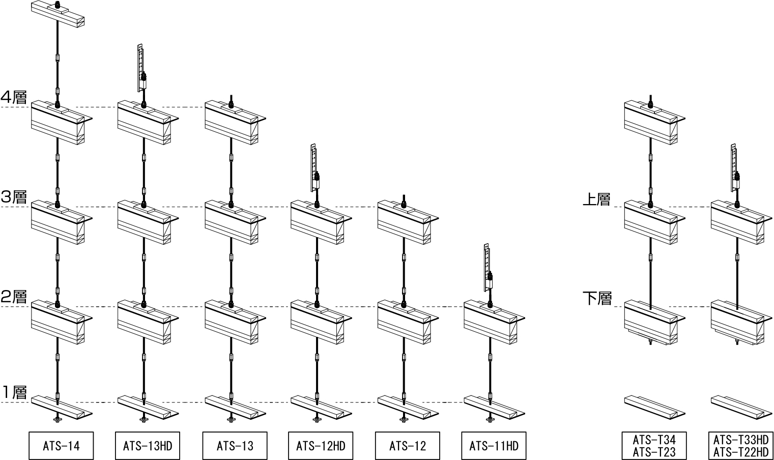 | セット名 | ATS-14 | ATS-13HD | ATS-13 | ATS-12HD | ATS-12 | ATS-11HD | ATS-T34 ATS-T23 | ATS-T33HD ATS-T22HD | ||||||||||
