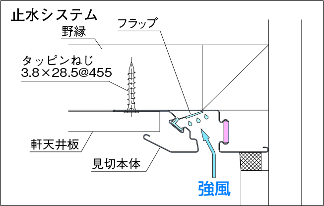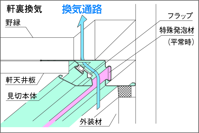 - 防火通気見切り縁は、従来の部分的換気方式と異なり建物全周で理想的な換気ができます。