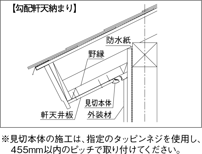 - 準耐火認定の適用には軒天材に限りがあります。軒天材の種類は認定書の材料構成に準じてください。