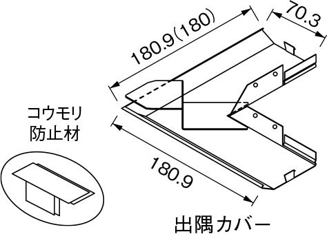 | 出隅カバー | 70.3×180.9×180.9 | ホワイト(WH) | DA9A0300 | 10個 | ー | 0.9 |