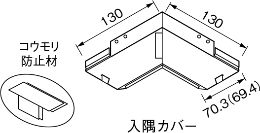 | 入隅カバー | 70.3×130×130 | ホワイト(WH) | DA9A0400 | ー | 0.7 | |