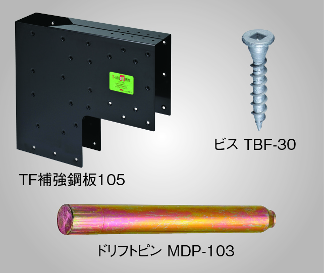 | 105-13S | WF101300 | TF補強鋼板105 2個 ビスTBF-30 140本 ラグスクリューL-300 13本 SW付丸座金 13枚 ドリフトピンMDP-103 6本 | 34.3 | ||