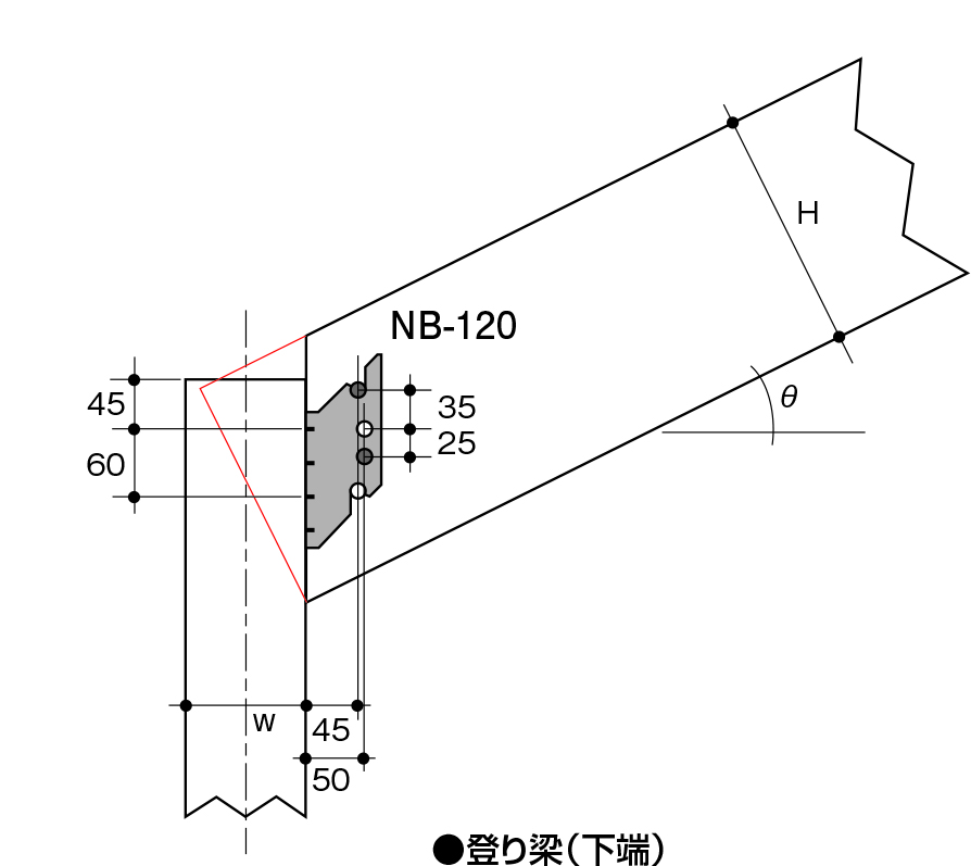 | 型番仕様 | 略称 | 対応梁成(mm) | 対応勾配(寸) | せん断耐力(kN) | 引張耐力(kN) |