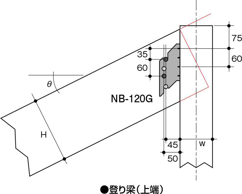 ※屋根勾配3寸までは梁受け金物MHを使用します。