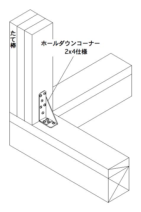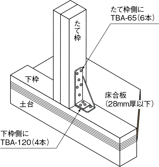 2×4根太レス工法のたて枠と土台の接合に使用します。