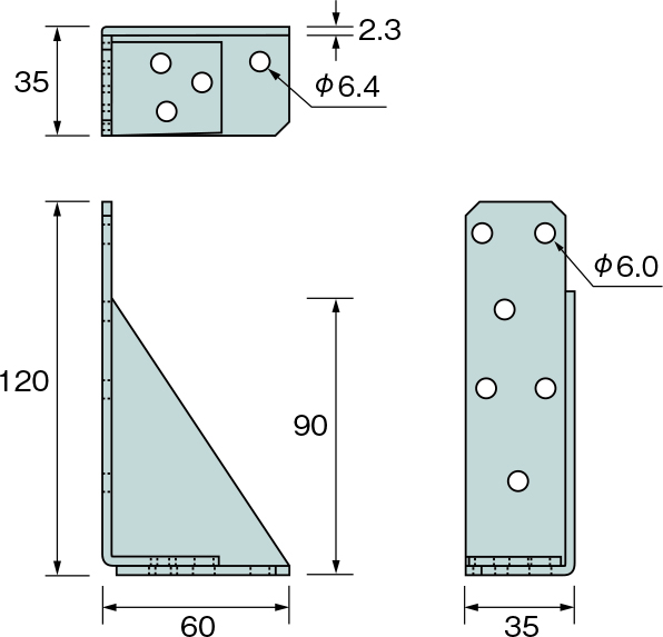 | 35×120×60×2. 3(t) | AF502700 | 50個 | 専用角ビットビス TBA-65(300本) TBA-120(200本) | 15.0 |