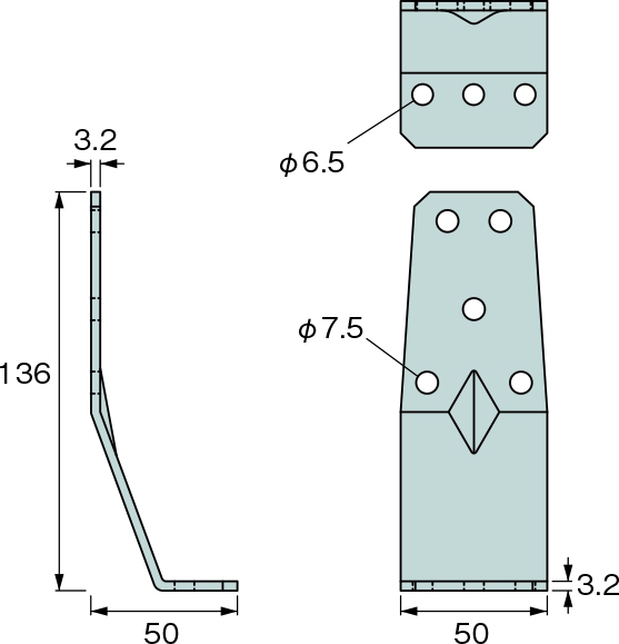 | 50×136×50×3. 2(t) | AA158900 | 50個 | 専用角ビットビス TBA-65(250本) TBA-150(150本) | 15.3 |