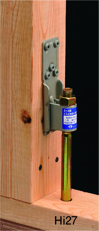 2×4工法住宅のホールダウン金物として使用します。横架材・基礎とたて枠の緊結、上下階のたて枠相互の緊結に使用します。