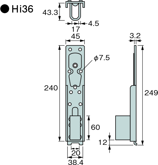 | Hi36 | 45×249×3.2(t) | AC2H3600 | 25個 | 専用角ビットビス TBB-75(250本) | 17.7 |