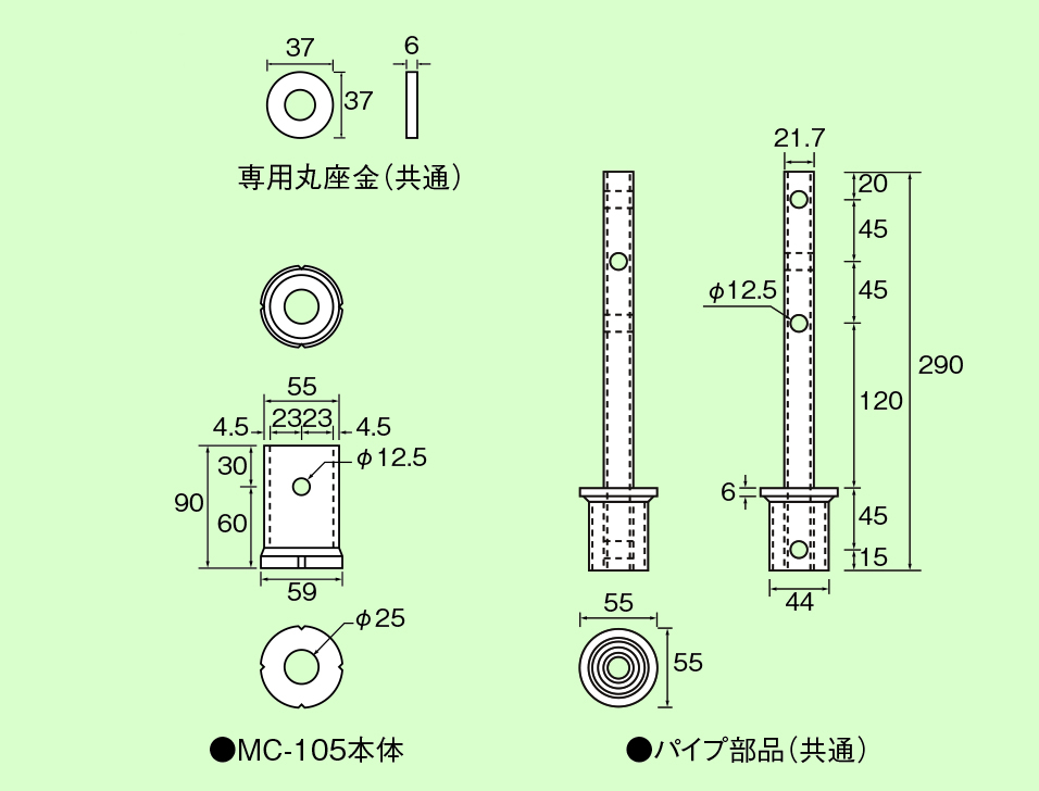 | MC-105 | 335×φ59 | AM3C0500 | 5セット | 専用丸座金 (t 6×φ37)5枚 |