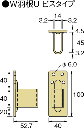 | W羽根Uビスタイプ | JIS G 3131(熱間圧延軟鋼板及び鋼帯)SPHC | |