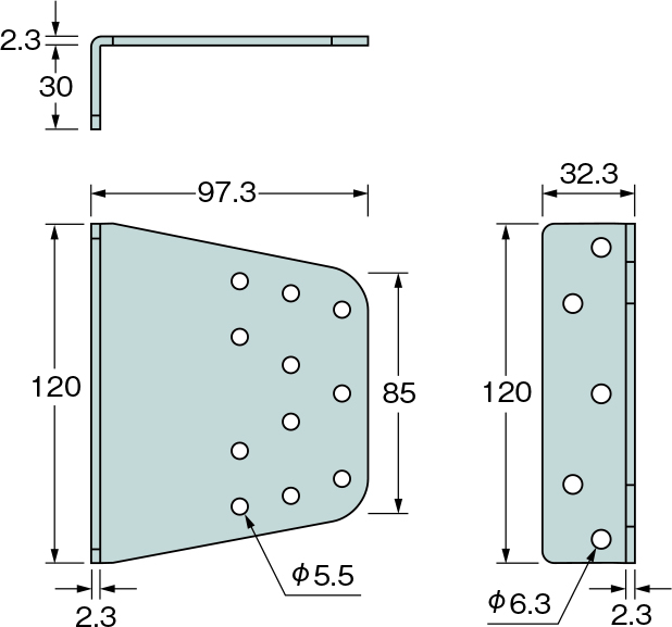 | 32.3×120×97.3×2.3(t) | AA108500 | 50個 | 専用角ビットビス TB-30(250本) TBA-65(250本) | 14.8 |