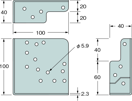 | 40×100×100×2.3(t) | AA107100 | 50個 | 専用角ビットビス TBA- 45(750本) | 17.6 |