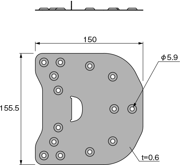 | 155.5×150×0.6(t) | AA109200 | 40枚 | 専用角ビットビス TBA-45(520本) | 6.8 |