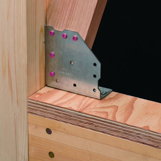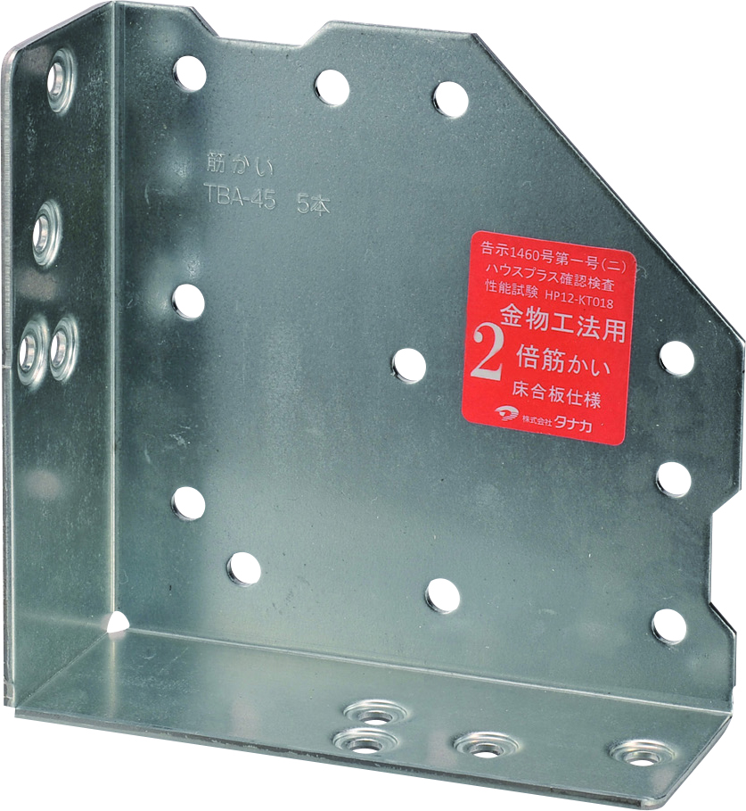 ②筋かいを金物の内側にセットし、専用角ビットビスTBA-45(5本)でとめ付けてください。