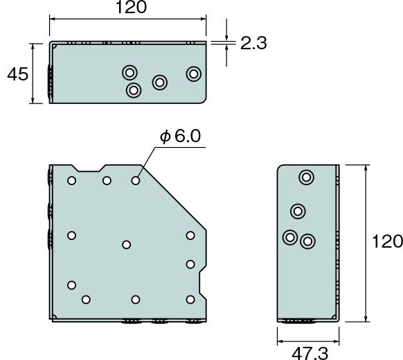 | 47.3×120×120×2.3(t) | AM320200 | 40個 | 専用角ビットビス TBA-45(360本) TB-76(160本) | 19.8 |