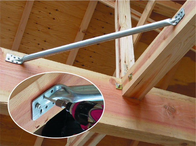 ②従来のボルトを使用する火打と異なりビスまたは釘どめなので作業がカンタンです。