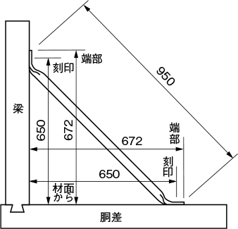 床組および小屋組の隅角部の補強として使用します。土台用火打としても使用できます。