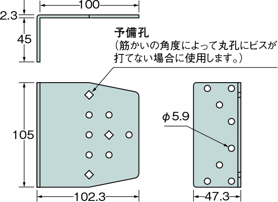 | 47.3×105×102.3×2.3(t) | AA1091ET | 50個 | 専用角ビットビス TBA-45(700本) | 16.7 |