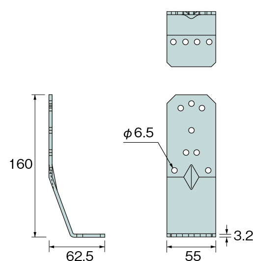 | 55×160×62. 5×3. 2(t ) | AA159000 | 50個 | 専用角ビットビス TBA-65(400本) TB- 101(200本) | 22.7 |