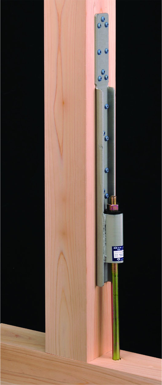 基礎と柱脚の緊結、柱と横架材の緊結、上下階の柱相互の緊結に使用します。