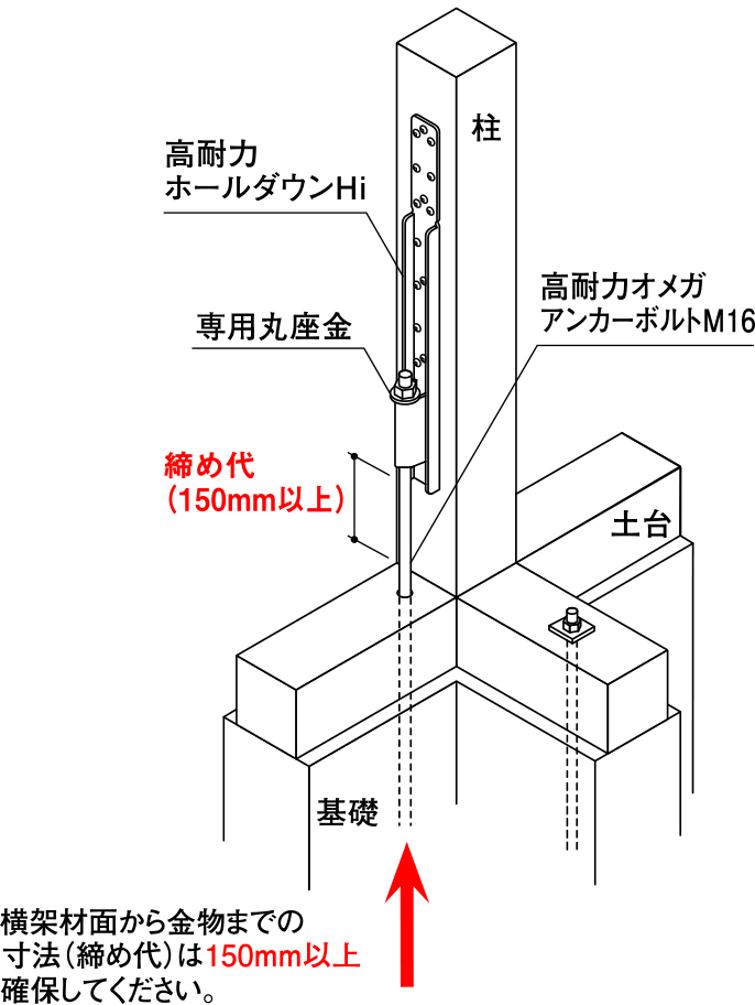 高耐力ホールダウンHi には高耐力オメガアンカーボルトM16をご使用ください。