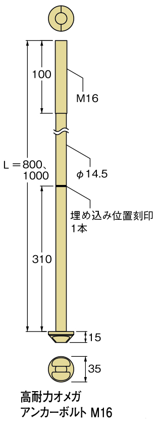 | 高耐力オメガアンカーボルトM16 | 310mm | 68.8kN |