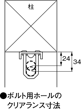 ②ボルト用ホールは従来品と同様にクリアランスを設け、ホールダウン用アンカーボルト取り付け位置の微調整が可能です。