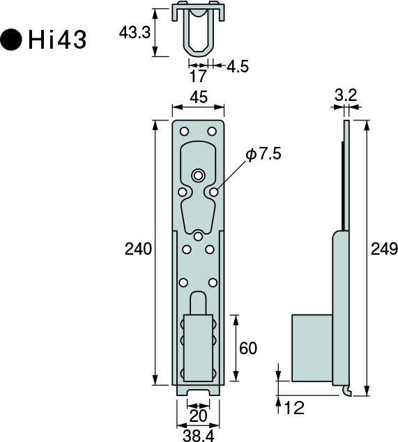 | Hi43 | 45×249×3.2(t) | AF4H4300 | 25個 | 専用角ビットビス TBB- 75(250本) | 17.7 |