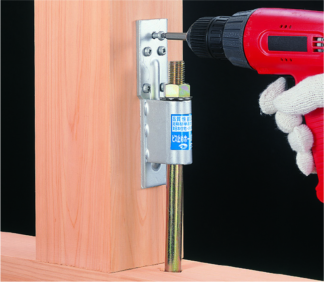 基礎と柱脚の緊結、柱と横架材の緊結、上下階の柱相互の緊結に使用します。