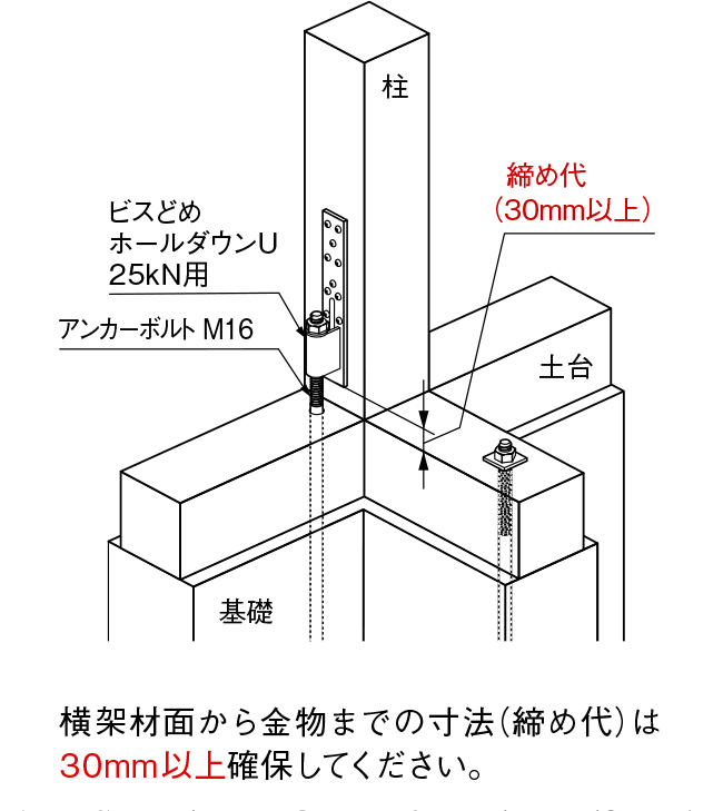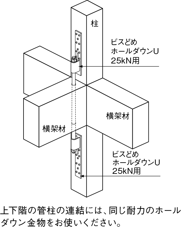 両引きボルトはホールダウン金物の耐力以上のものをご使用ください。