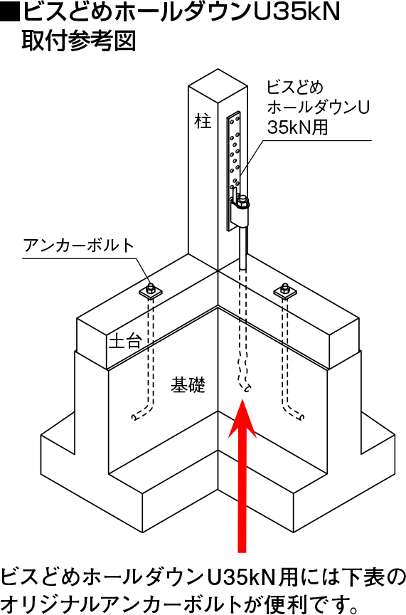 ビスどめホールダウンU35kN用には下表のオリジナルアンカーボルトが便利です。