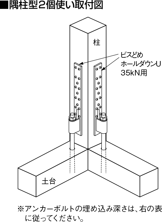 ※公財・日本住宅・木材技術センターのアンカーボルトの短期許容耐力表の改定に伴い、 埋め込み深さを変更しております。