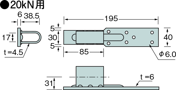 | 20kN用 | 40×195×6.0(t) | AF414600 | 専用角ビットビス TBA-65(210本) M16用平ワッシャー(30枚) | 17.3 | |