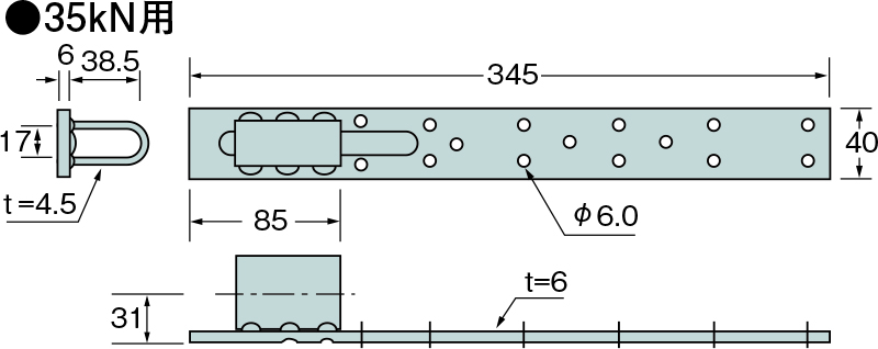 | 35kN用 | 40×345×6.0(t) | AF434600 | 専用角ビットビス TBA- 65(375本) M16用平ワッシャー(25枚) | 23.3 |