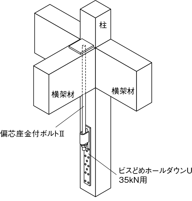 両引きボルトM16を用いてホールダウン金物同士を引き合うように施工してください。