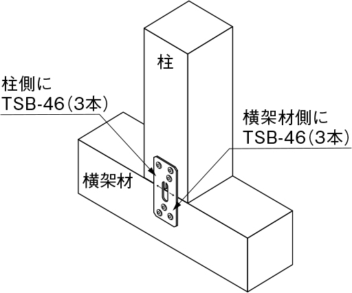 - 専用ステンレス角ビットビスTSB-46で本体をとめ付けてください。