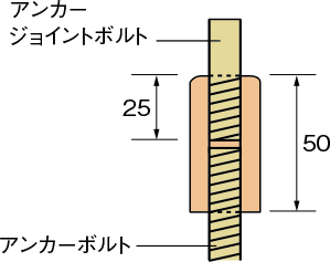 アンカージョイントボルトのネジ山25mmを高ナットにピッタリ収めます。