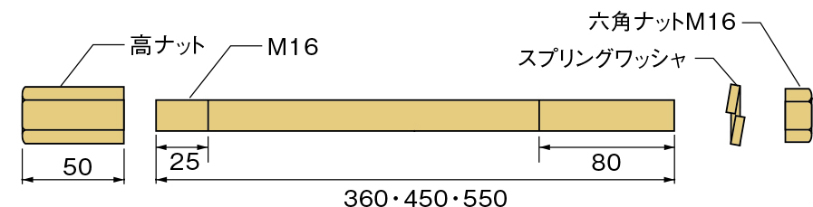 | L=360 | M16×360 | AF3T3600 | 20本 | 高ナット 六角ナットM16 スプリングワッシャ (各20個) | 13.9 |