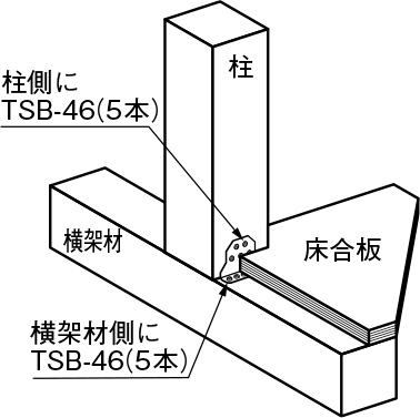 - 専用ステンレス角ビットビスTSB-46で本体をとめ付けてください。