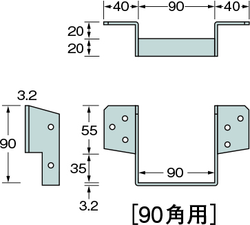 | 90角用 | 90×90×40×3.2(t) | AB490600 | 30個 | 専用スクリュー釘 ZS-50(300本) | 10.5 |