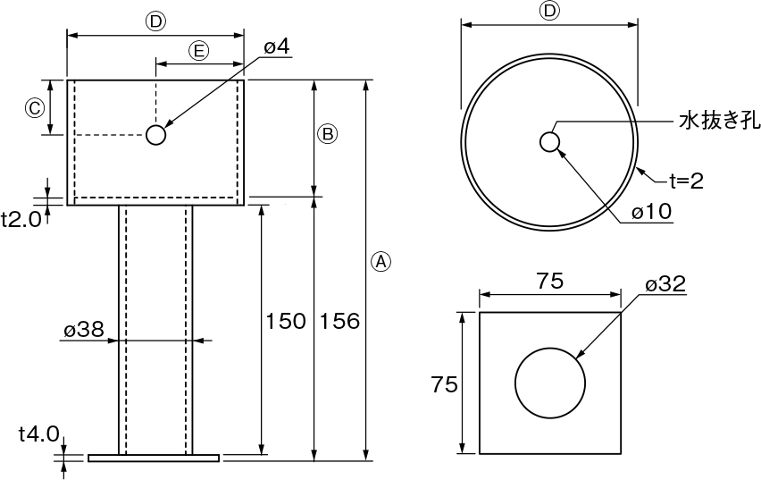 - 本体内部に水抜き孔を設けてあります。
