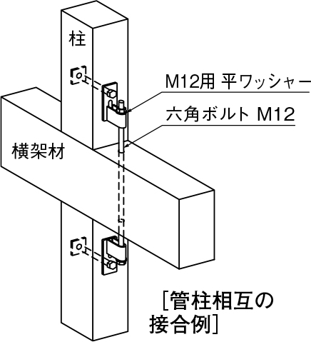 ②本体にボルトを通し、平ワッシャーを介してナットで締め付けてください。