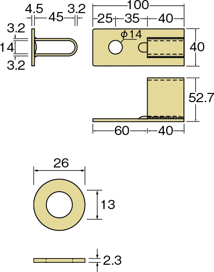 | 40×100×52.7×4.5(t) | AA300600 | 100個 | M12用平ワッシャー (100枚) | 23.6 |