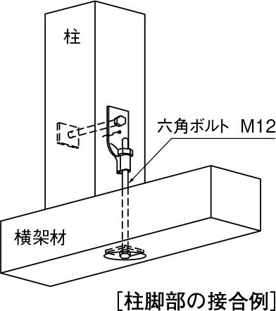 ①柱または横架材を引き寄せる際に使用する六角ボルトの長さを任意に決めることができますので、筋かいとの干渉を避けられます。