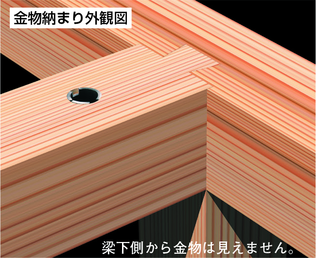 ①金物を梁内部に埋め込みますので、化粧梁に適しています。