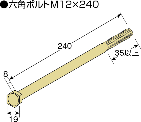 | AA310800 | 20セット | 専用角ビットビスTBA-65(80本)、専用角ビットビスTB-101(80本) M12用平ワッシャー(20枚)、パクトナットM12(20個) 六角ボルトM12×240(20本) | 15.2 |