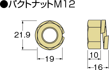 ⑤付属のパクトナットM12でさらに締付け、Wナットになるようにしてください。