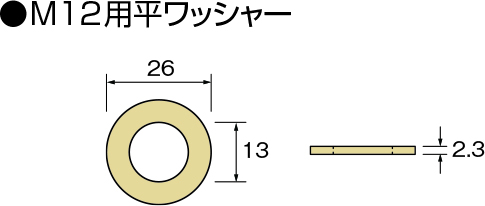 ④M12用平ワッシャーを介して付属の六角ナットM12で締め付けます。