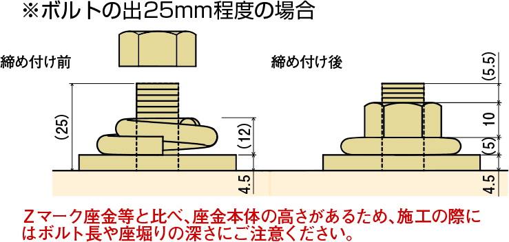 羽子板ボルト、その他のM12ボルトの締め付け部分に座金として使用します。